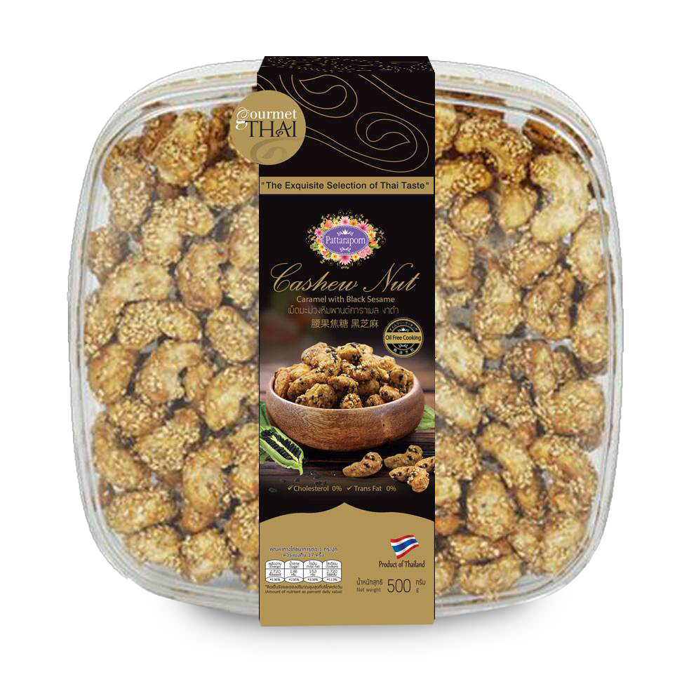 เราบรรจุเม็ดมะม่วงหิมพานต์ คาราเมล (สูตรไร้น้ำมัน) ในซองอลูมิเนียม ฟอยด์ หรือกระปุก PET พร้อมอัดไนโตรเจน เพื่อคงความหอม กรอบ อร่อยแบบไม่มีใครเหมือน